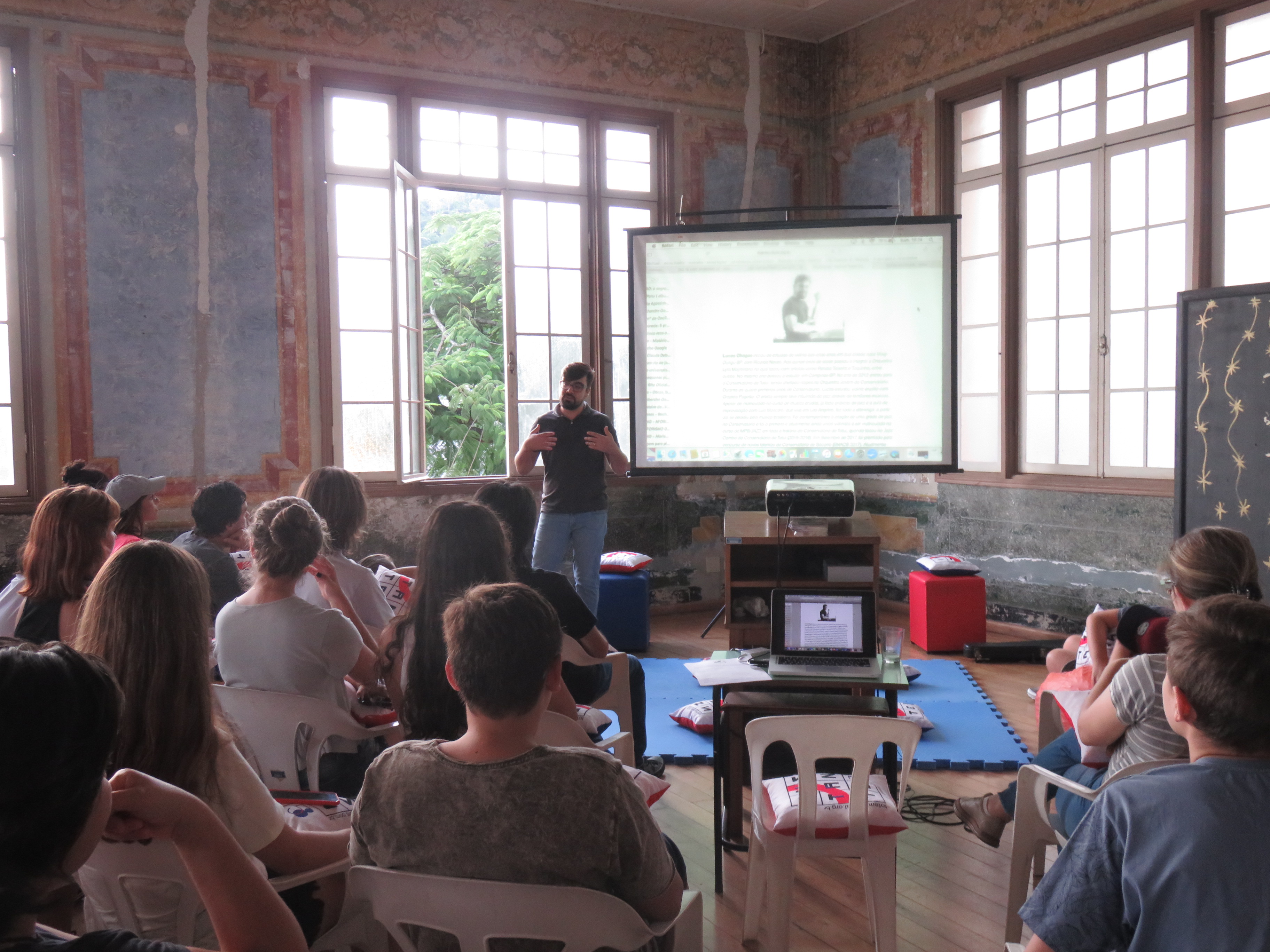 No bate papo inicial tivemos a presença de Lucas Chagas, que deu suas primeiras dicas de como trabalhar a trilha sonora dos videos a serem desenvolvidos durante o projeto. Sugeriu algumas trilhas criadas por ele e Gabriel Perre exclusivamente para o projeto, que podem ser utilizadas sem pagamento de direitos autorais. Ele falou também sobre as musicas em domínio publico, sabendo-se que no No Brasil, as obras só caem em domínio público depois de 70 anos, sendo que para trabalhos feitos entre 1879 e 1987, o prazo é de 80 anos.