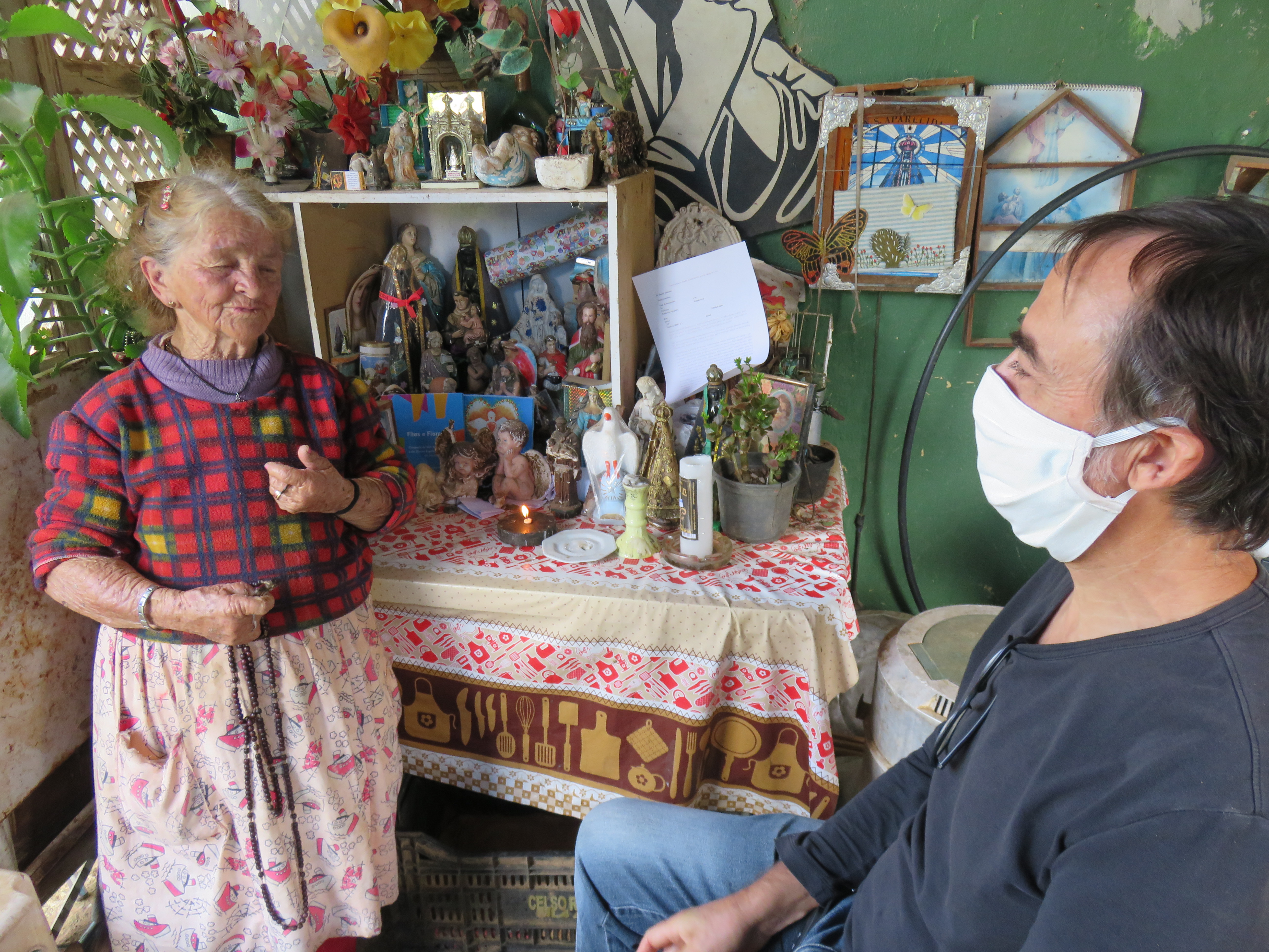 Terceira entrevista : Dona Lourdes – Bairro de Santa Cruz – 26/02/2020. Foto Clara de Ro.D. Lourdes é entrevistada por Marinilda Boulay. Foto Clara de Ro.Quarta entrevista: D. Lucrécia Bertoletti Giomo. Bairro da Varginha, 15/03/2020. Foto Bruno Boulay