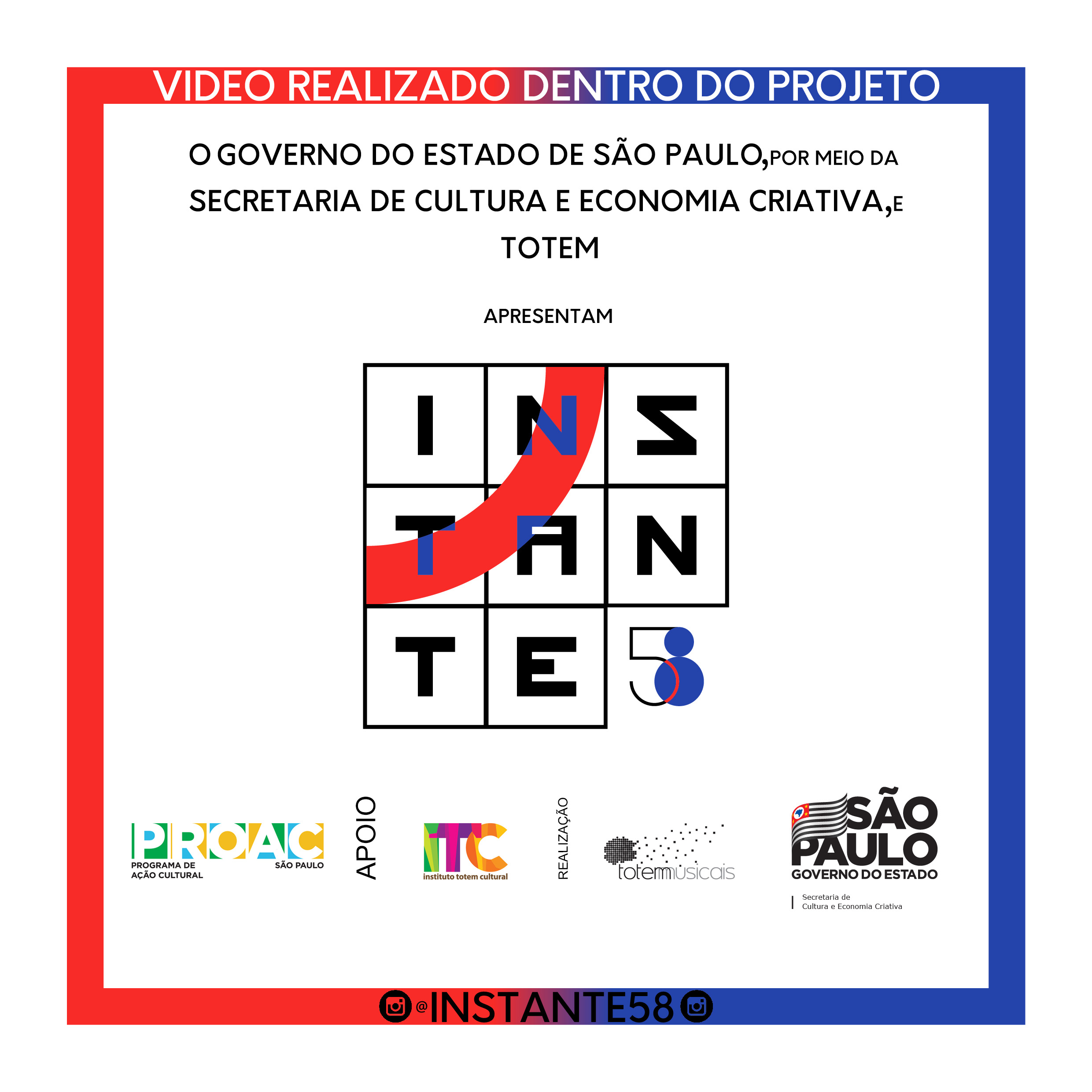 Esse é o frame utilizado na abertura de cada video criado dentro do projeto, Eles deveriam ser enviados até dia 2 de abril pelo email instante58@gmail.com para a preparação da exibição, que aconteceu nos dois dias de fórum, que encerraram o primeiro ciclo do projeto dias 5 e 6 de abril 2019.